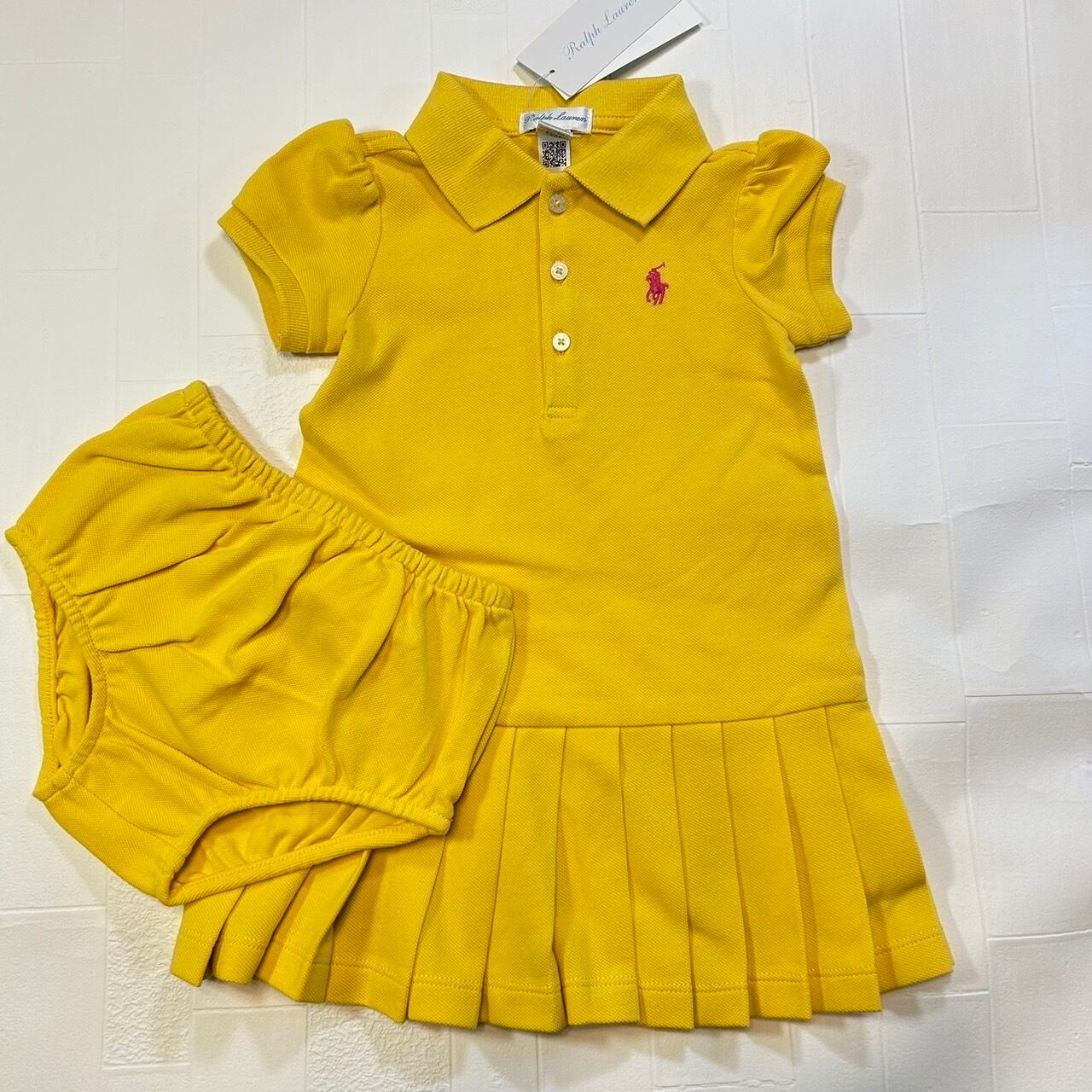 なめらかなコットンのポロドレス。お揃いのブルマー付きセット。