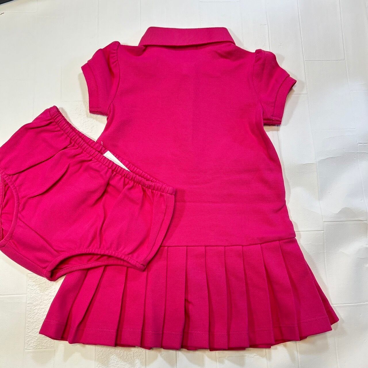 なめらかなコットンのポロドレス。お揃いのブルマー付きセット。