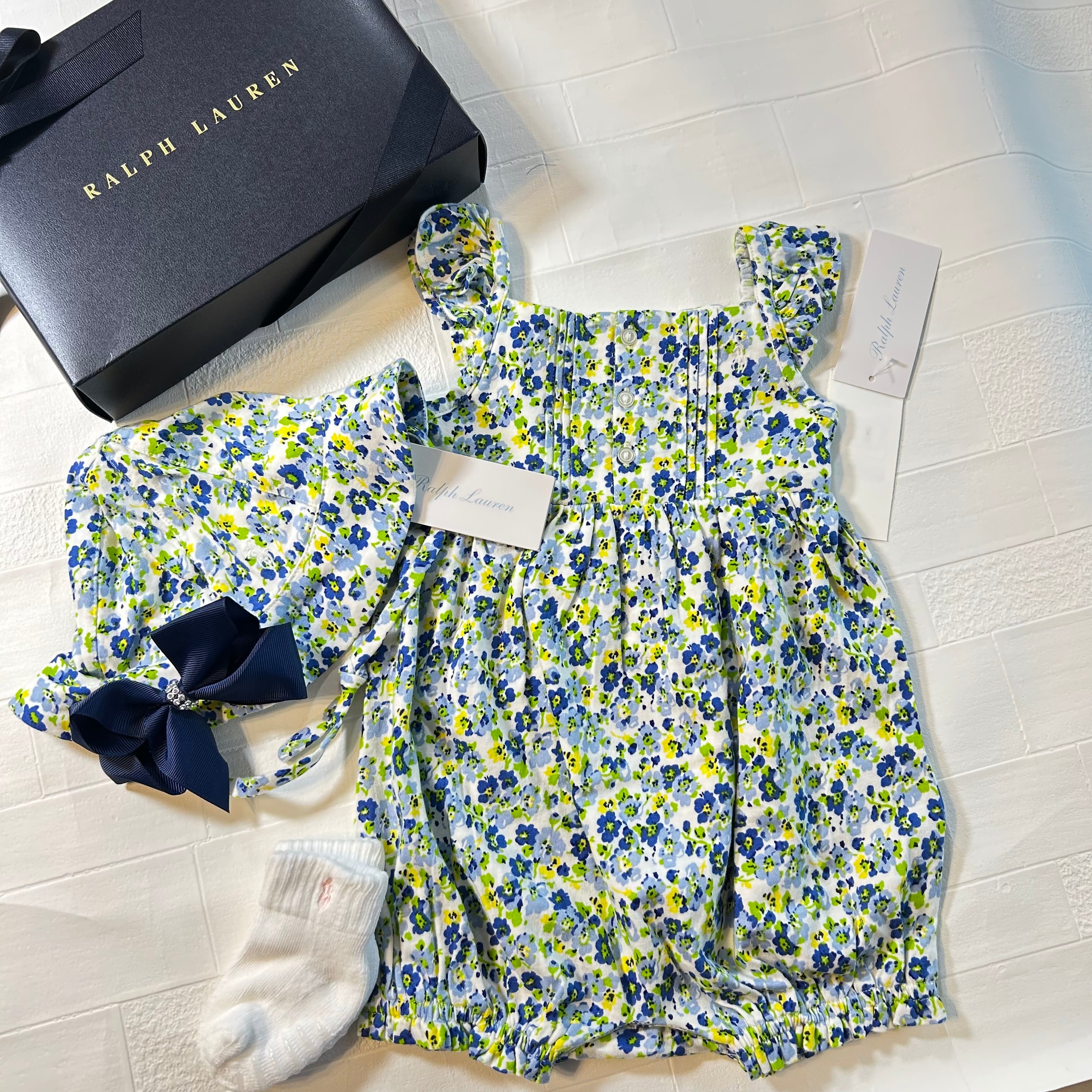 【80cm】ベビー(女の子)半袖ロンパース&帽子