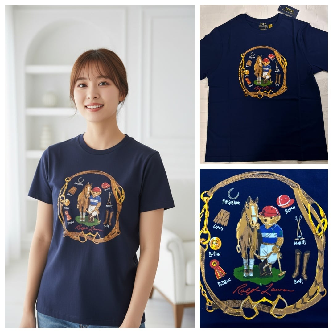 ネイビーの上品さに、Poloベアの存在感。1枚でコーデが完成して、写真映えも抜群。デニムにもショーツにも相性がよく、夏の主役Tシャツとして長く使えます。L/XLが動きやすいデザインなので、サイズがあるうちに確保がおすすめです。
